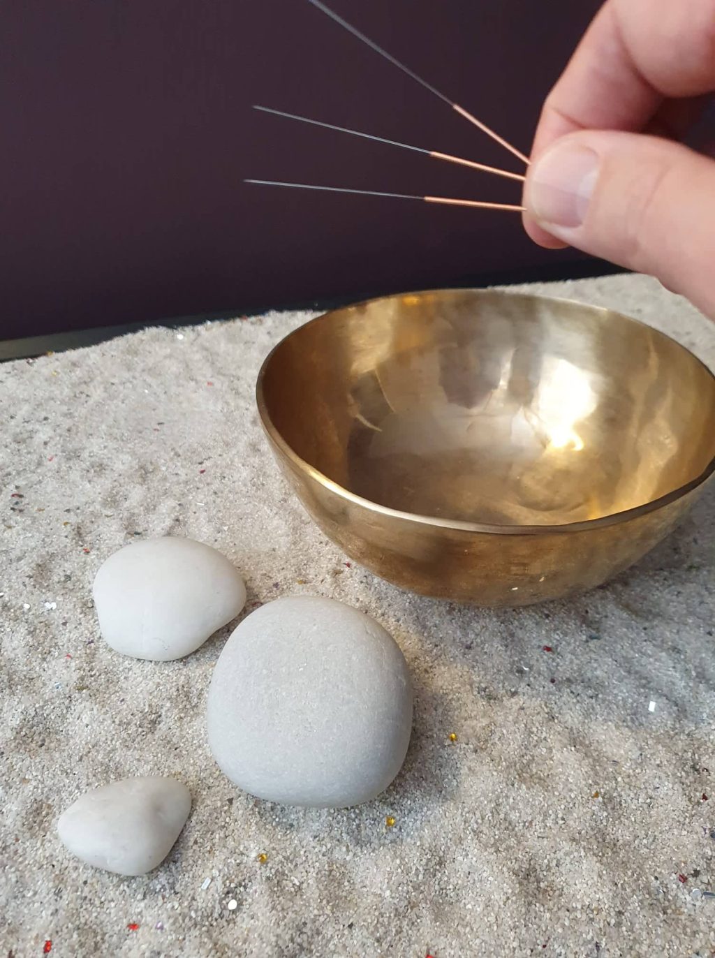 needs. By adding sound, the Frequency and waves travel through the needle, increasing the therapeutic affect of the needle. This increase in intensity is a pleasant one from which the client feels very little or no discomfort at all. I use it particularly if a client is highly anxious or stressed. The combination really brings the client to a blissful relaxed state, gently and powerfully.