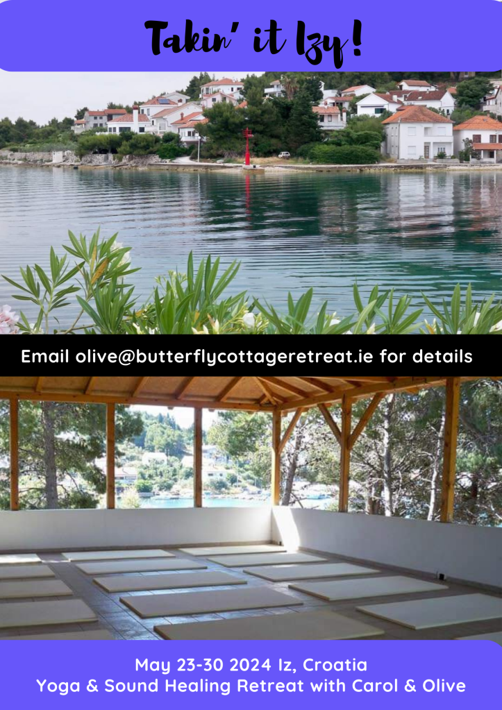 If you’d like to explore this practice some more I welcome you to visit Butterfly Cottage Retreat in Co. Westmeath, or if you haven’t your summer hols planned then we welcome you to join us in May for a for a week-long Yoga and Sound Healing Retreat in Croatia.